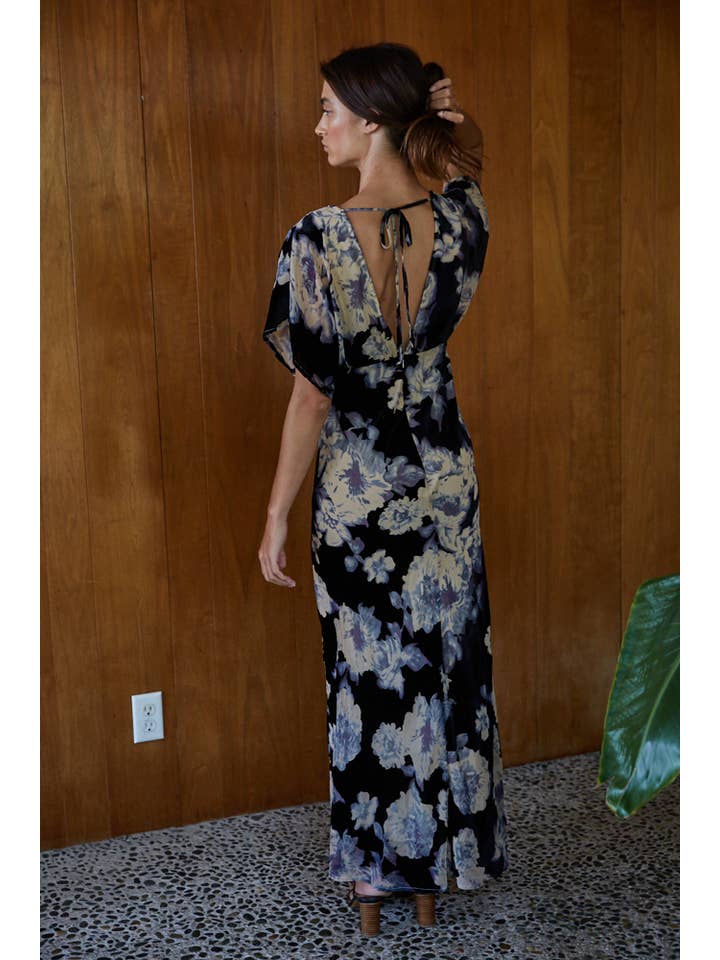 Midnight Bloom Velvet Floral Maxi