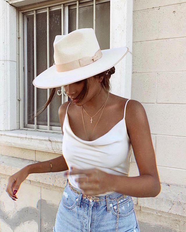 Trimmed with Light Gold gross grain edged hat rim and bow ribbon detail